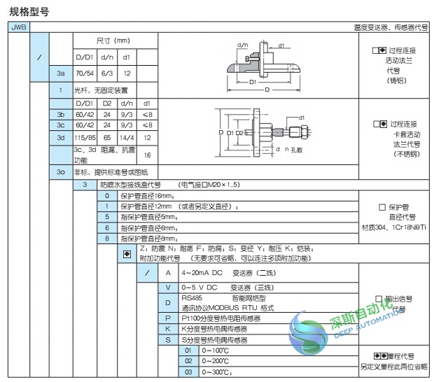 JWB/43 系列 防水型固定法兰式一体化温度变送器、传感器