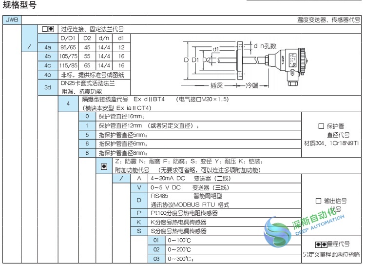 JWB/44 系列 防爆型法兰式一体化温度变送器、传感器