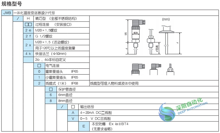 输出信号:4~20mA DC(二线制电流型)